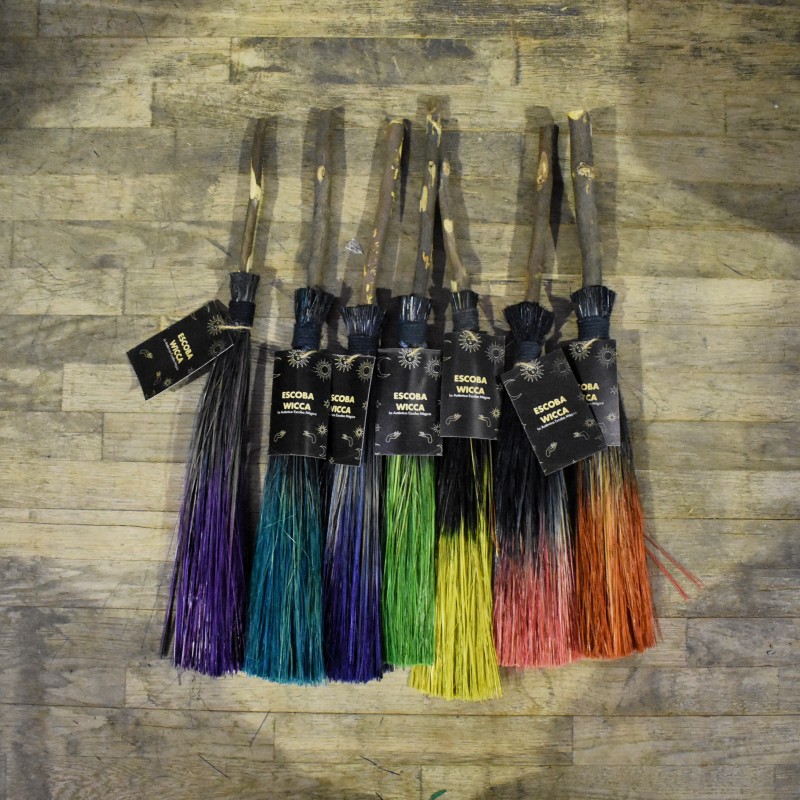 Las escobas de bruja son una icónica herramienta que forma parte de la cultura Wicca y de Magia Pagana. Se utilizan para realizar diferentes tipos de rituales, sobre todo de limpieza energética para purgar energías de carga negativa. Cada escoba se elabora a mano, con madera y fibras vegetales, siguiendo tradiciones ancestrales, cada escoba es única y son elaboradas con mucha dedicación y esfuerzo por maestras artesanas.