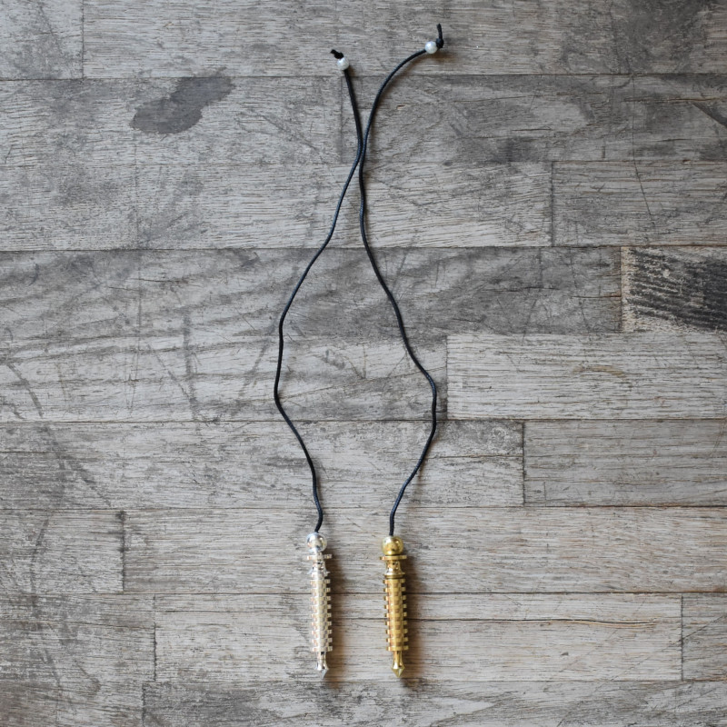 Su diseño alargado favorece la precisión y la sensibilidad. Disponible en acabado dorado y plateado, con cordón negro incluido.
