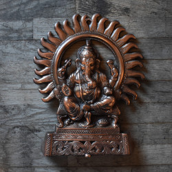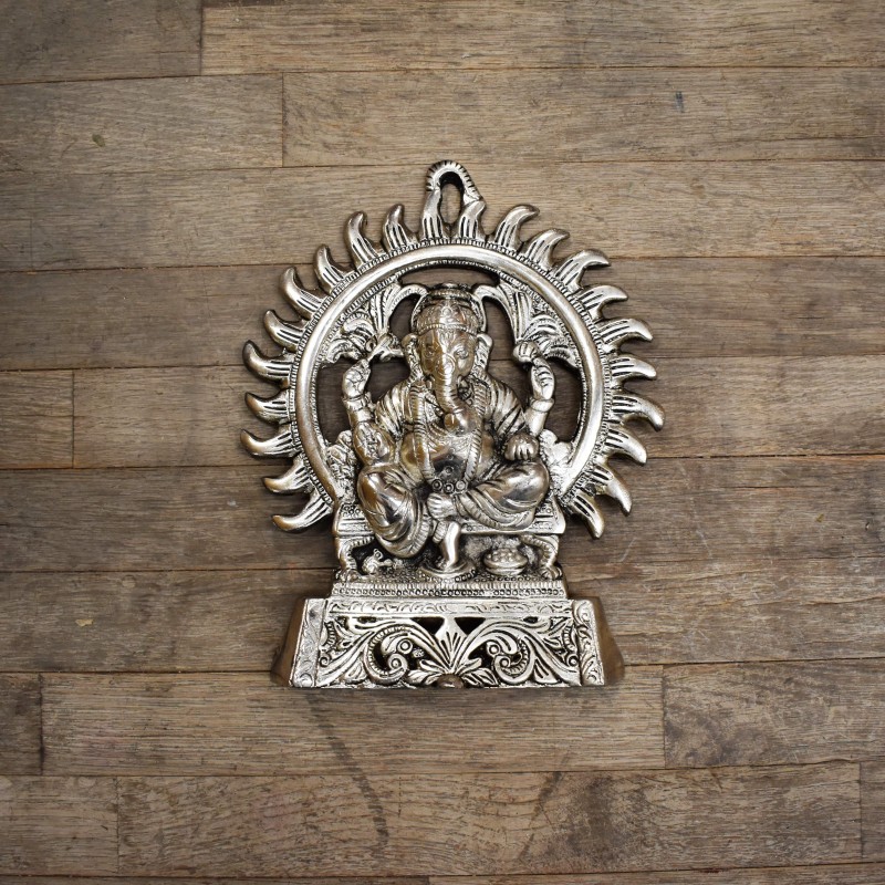 Figura de metal estilo envejecido, arte tradicional de India, artesanal de Ganesha, ideal para decorar. Colores en Bronce, plata y oro