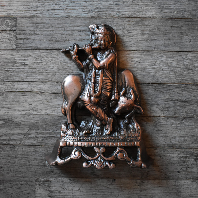 Figura Altar Krishan elaborada en metal acabado color bronce, ideal para crear espacios de devoción, armonía y espiritualidad. Su presencia aporta simbolismo y elegancia, perfecta para altares, rincones sagrados, mostradores o decoración temática en tiendas esotéricas.