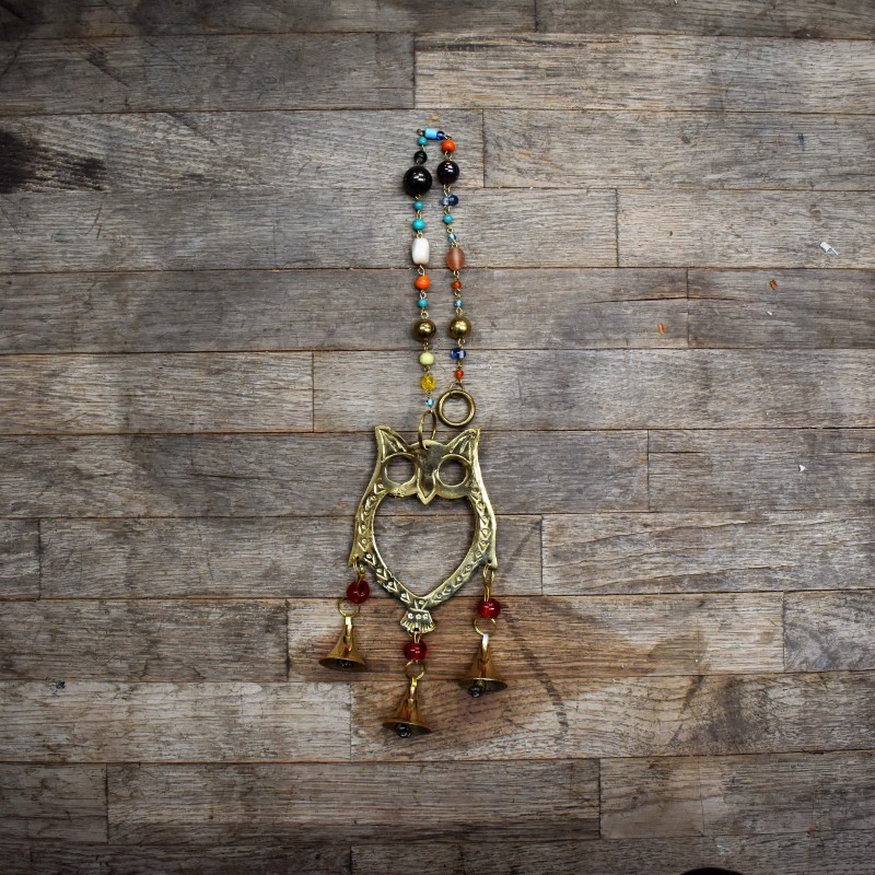 Movil en bronce con búho, animal que representa la sabiduría y el conocimiento. Producto en liquidación