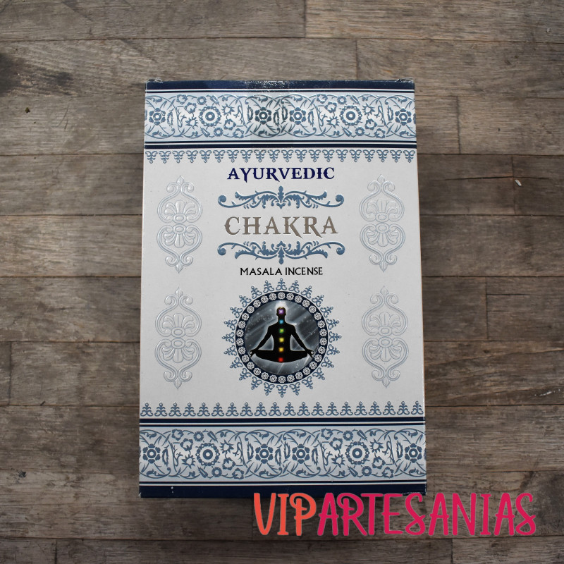 El incienso Ayurvedic Chakra Masala, es el resultado único de la combinación de selectas hierbas, flores, miel, resinas y aceites. Es un incienso natural completamente libre de productos toxicos. De esta forma se consigue una esencia refrescante y calmante de ChakraCuida de tu mente y alma con esta fragancia a lo largo de tu día que hace palpitar tus sentidos en un sueño astral creativo