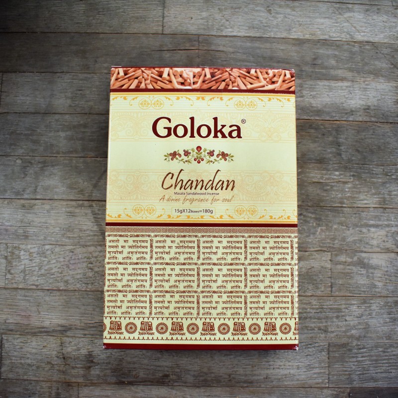 Incienso Premium Chandan Masala, de la marca Goloka, elaboración 100% artesanal con materias completamente naturales.