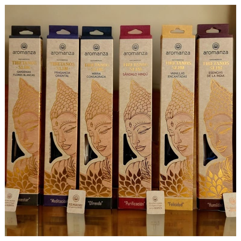 Sumergete en la magia ancestral con los Sahumerios Tibetanos Slim de AROMANZA 🧘. Elaborados artesanalmente con ingredientes 100% naturales y resinas seleccionadas, cada varilla es una herramienta poderosa para la limpieza energética, meditación o aromatización de espacios. Su forma slim permite una combustión uniforme y prolongada 🔥.