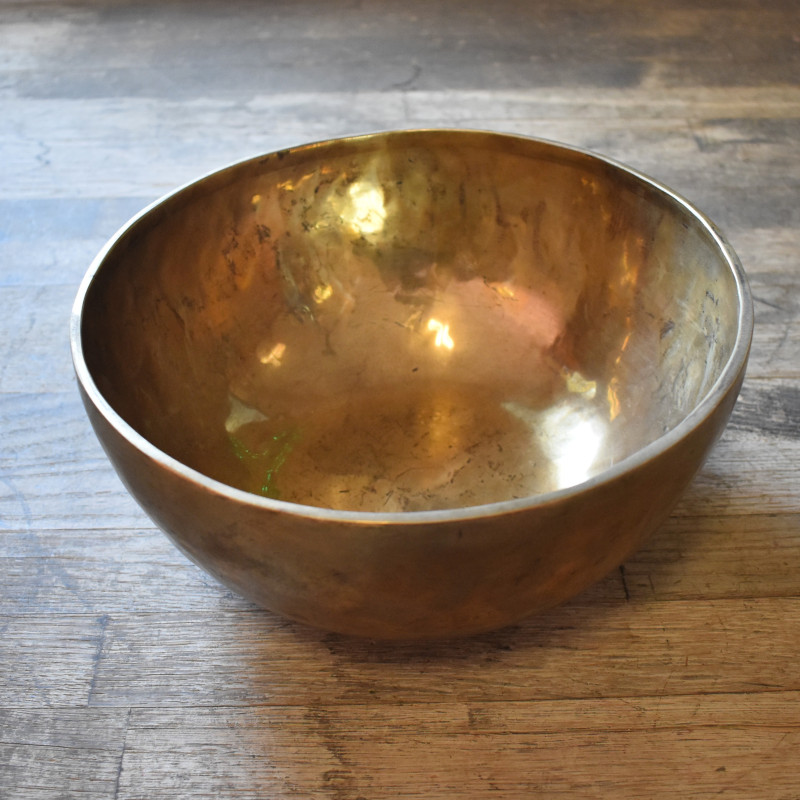 Cuenco tibetano original de 7 metales, elaborado artesanalmente. Cada pieza es única, con sus propias tonalidades y matices sonoros, lo que lo convierte en un artículo premium muy valorado para meditación, sonido terapéutico y armonización de espacios.