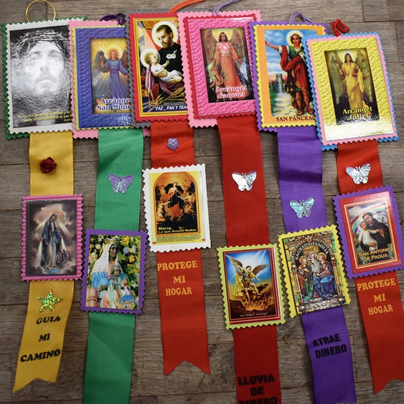 Estampas en LIQUIDACIÓN, con representación de varios santos y vírgenes, además de incluir oración para rezo