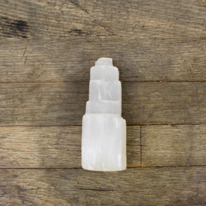 Estas piezas de selenita han sido pulidas y posteriormente tallas artesanalmente, con diferentes motivos, como los chakras, magia wicca, budismo, ...