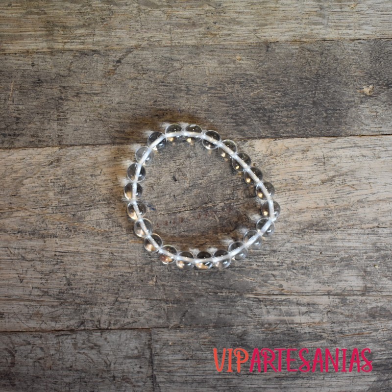 Pulsera modelo bola de 8mm en cuarzo cristal de roca, engarzada en hilo de silicona de primera calidad.