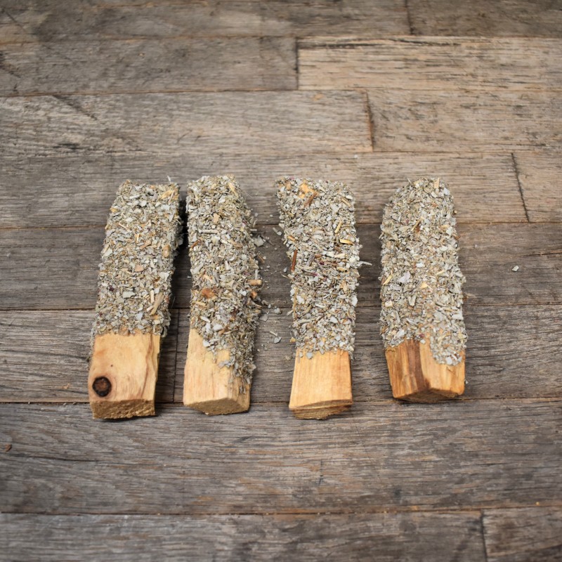 Palo Santo rebozado en hierbas y resinas · Variante aromática: Azahar