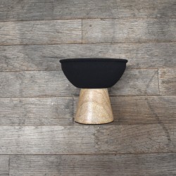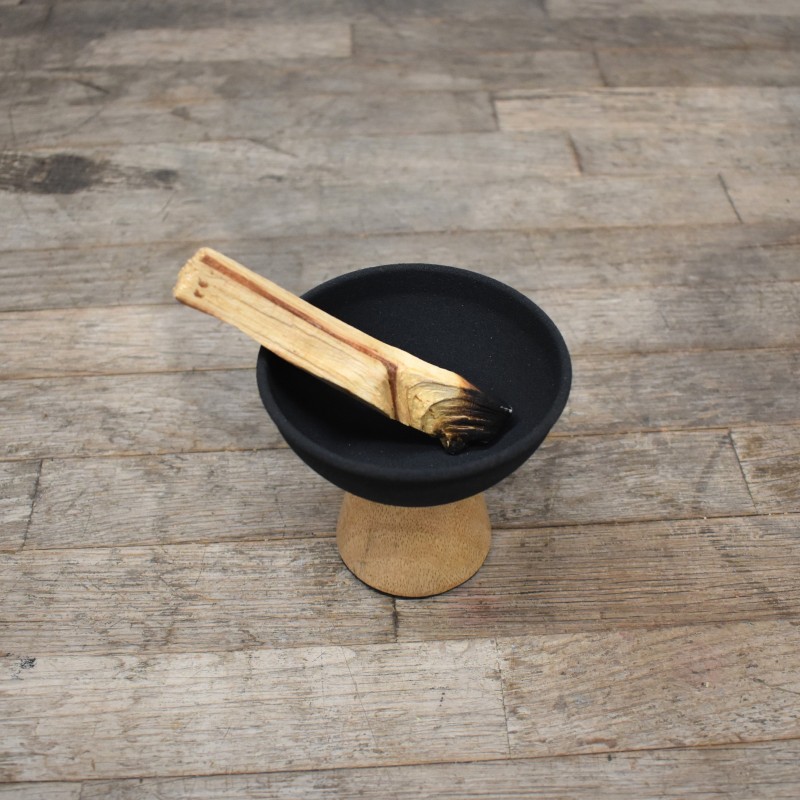 Sahumador elaborado en dos piezas con madera y cerámica, ideal para quemar palo santo, ataditos bombitas y resinas