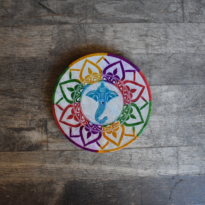 Nueva Tabla Porta Incienso de piedra originaria de Agra, la ciudad del Taj Mahal, grabado artesanalmente con diseño de Ganesha