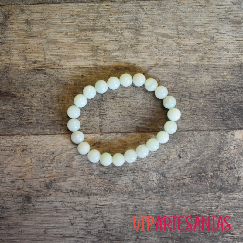 Esta pulsera esta ensartada en hilo de silicona con doble vuelta.