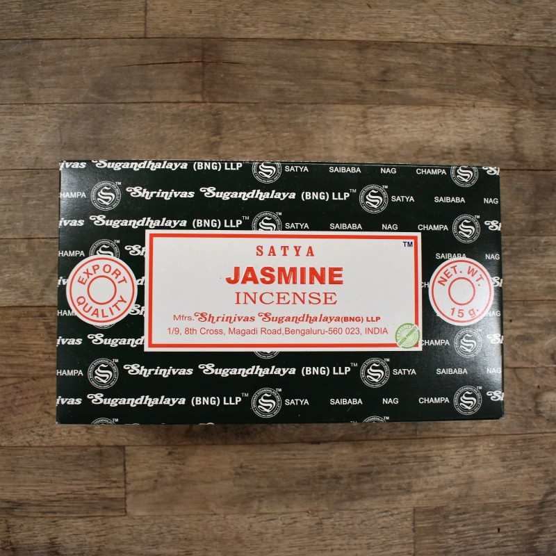 Incienso natural de la marca Satya, elaborado artesanalmente con exquisita fragancia de Jazmín