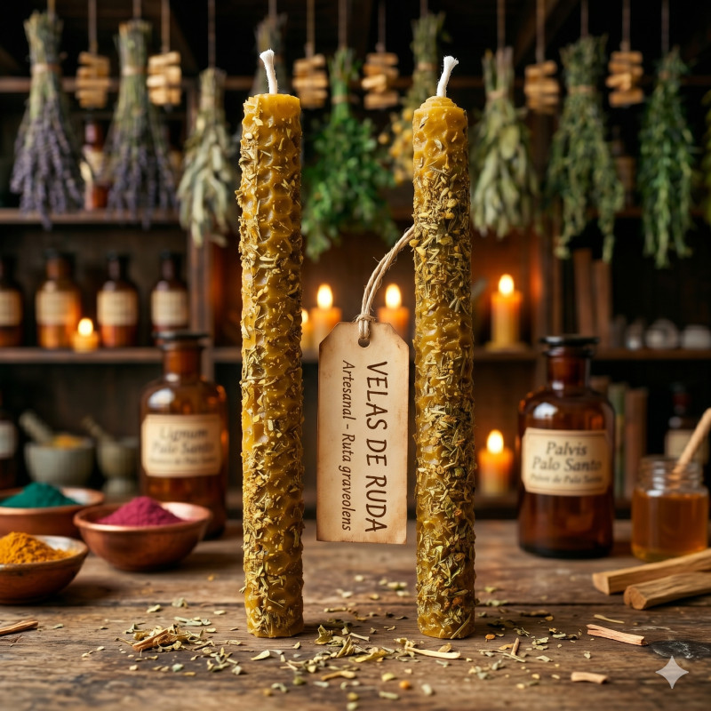 Formato y Origen Confeccionadas de manera 100% artesanal empleando pura miel nacional, estas velas se distinguen por su cuidadoso acabado "Dip", estando rebozadas a mano en hojas de ruda secas y resinas naturales de primera calidad. Se presentan en un formato comercial y práctico de packs de 2 unidades, perfecto para impulsar la venta recurrente y facilitar los rituales de limpieza de los usuarios. Sumada a esta poderosa variante de ruda, la línea de Velas de Miel Dip de Soulight incluye diferentes versiones rebozadas con otras hierbas y resinas, lo que te permite ofrecer un catálogo esotérico integral.